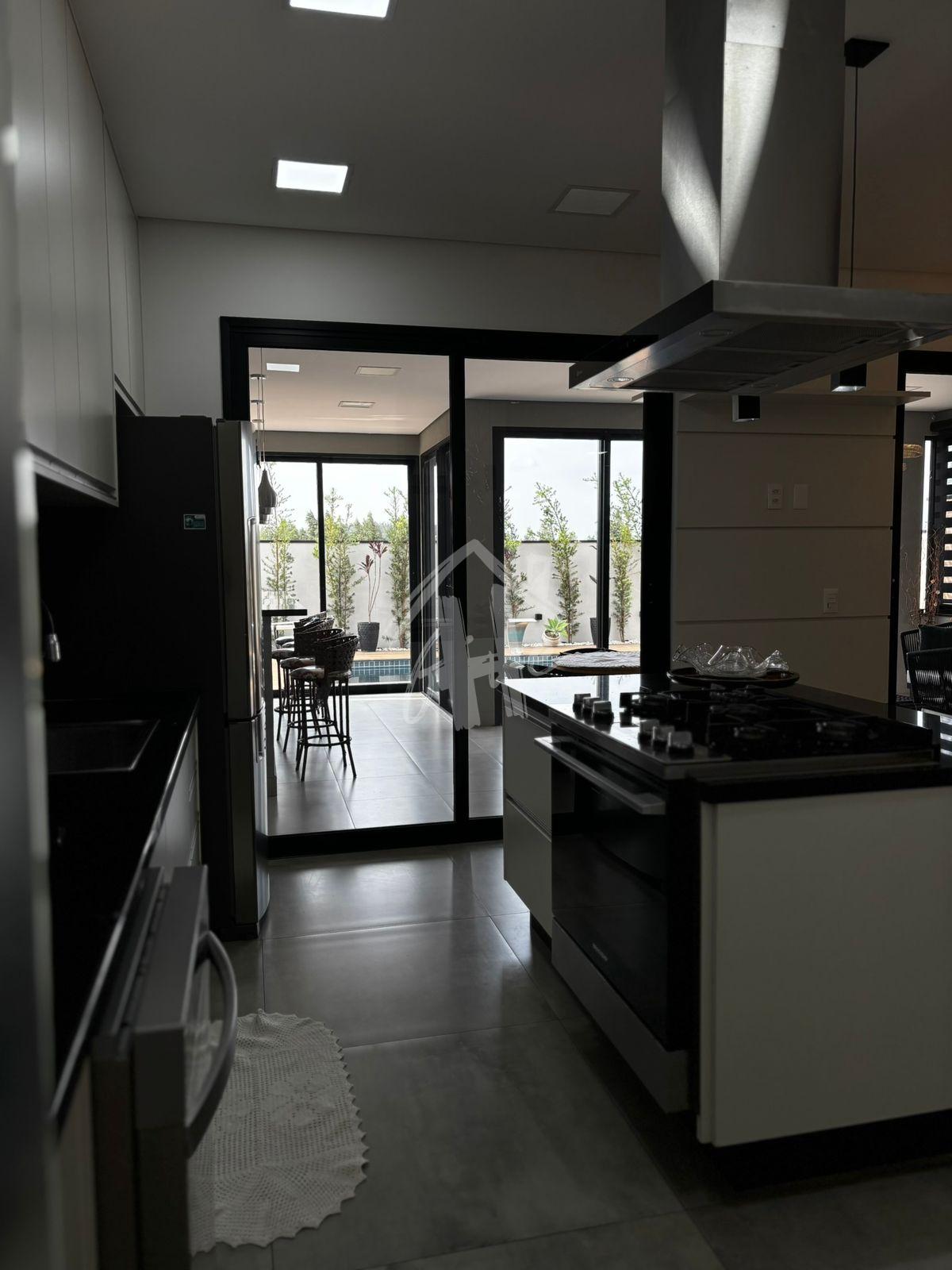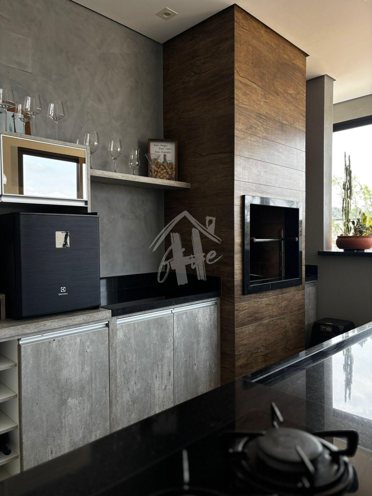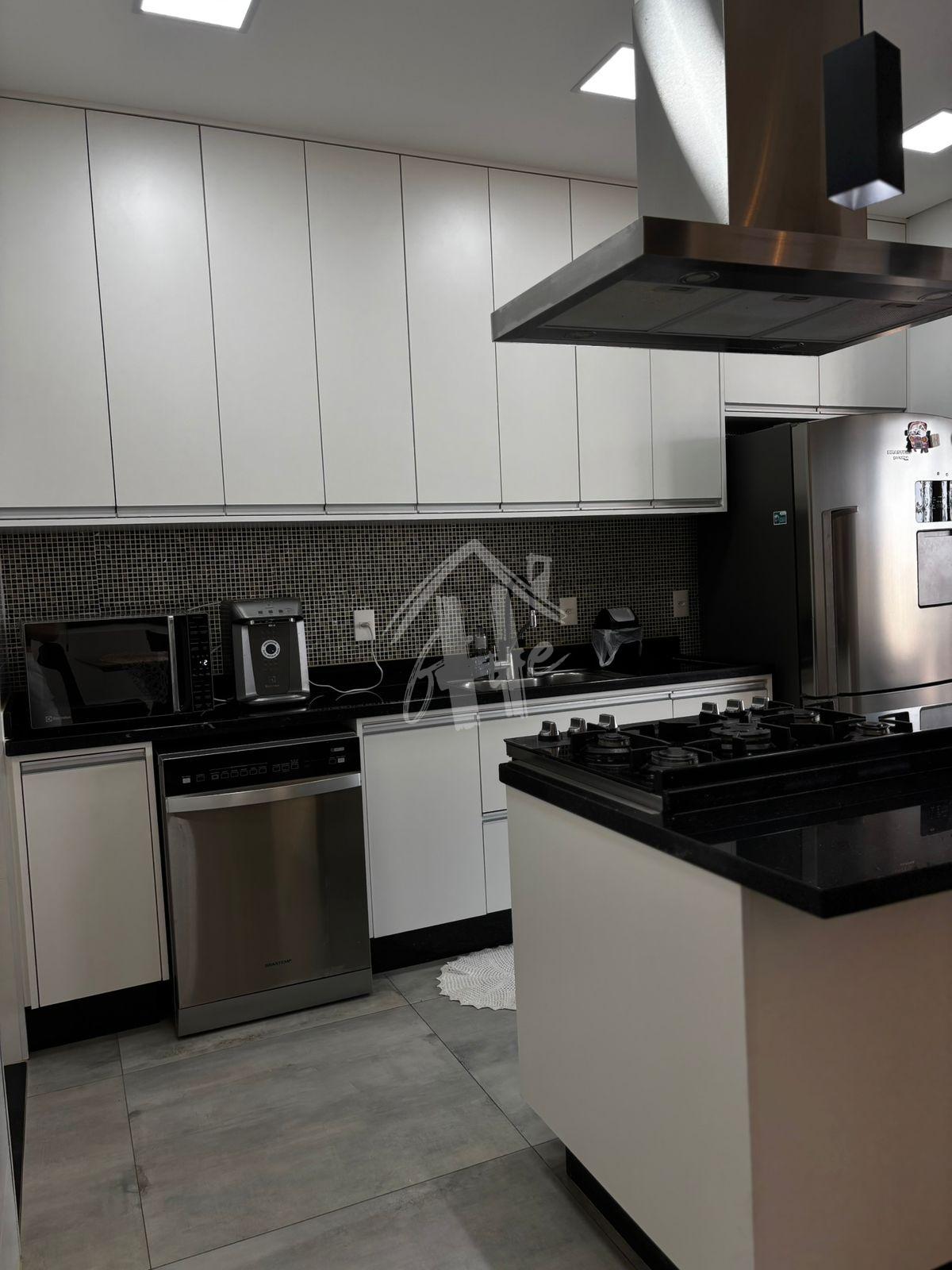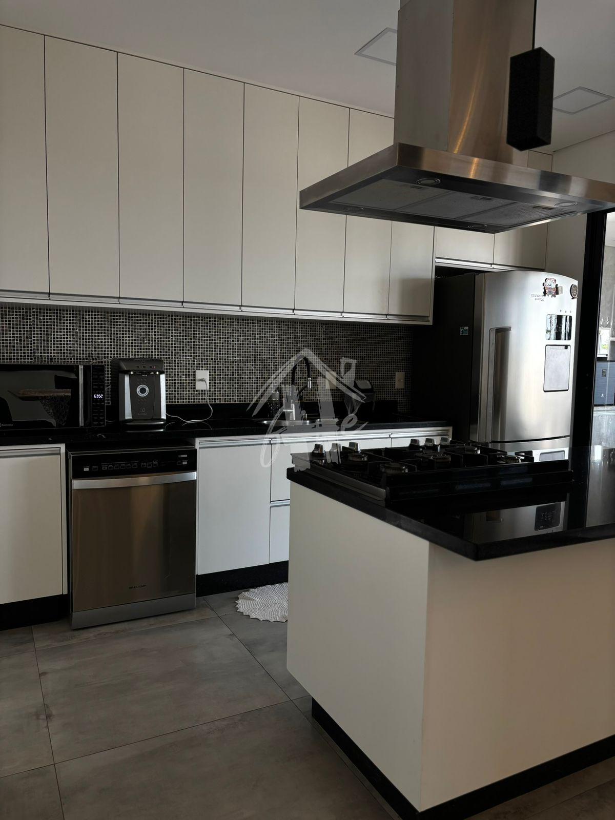 - Cozinha com móveis planejados, microondas, cooktop, geladera, fogão e coifa;